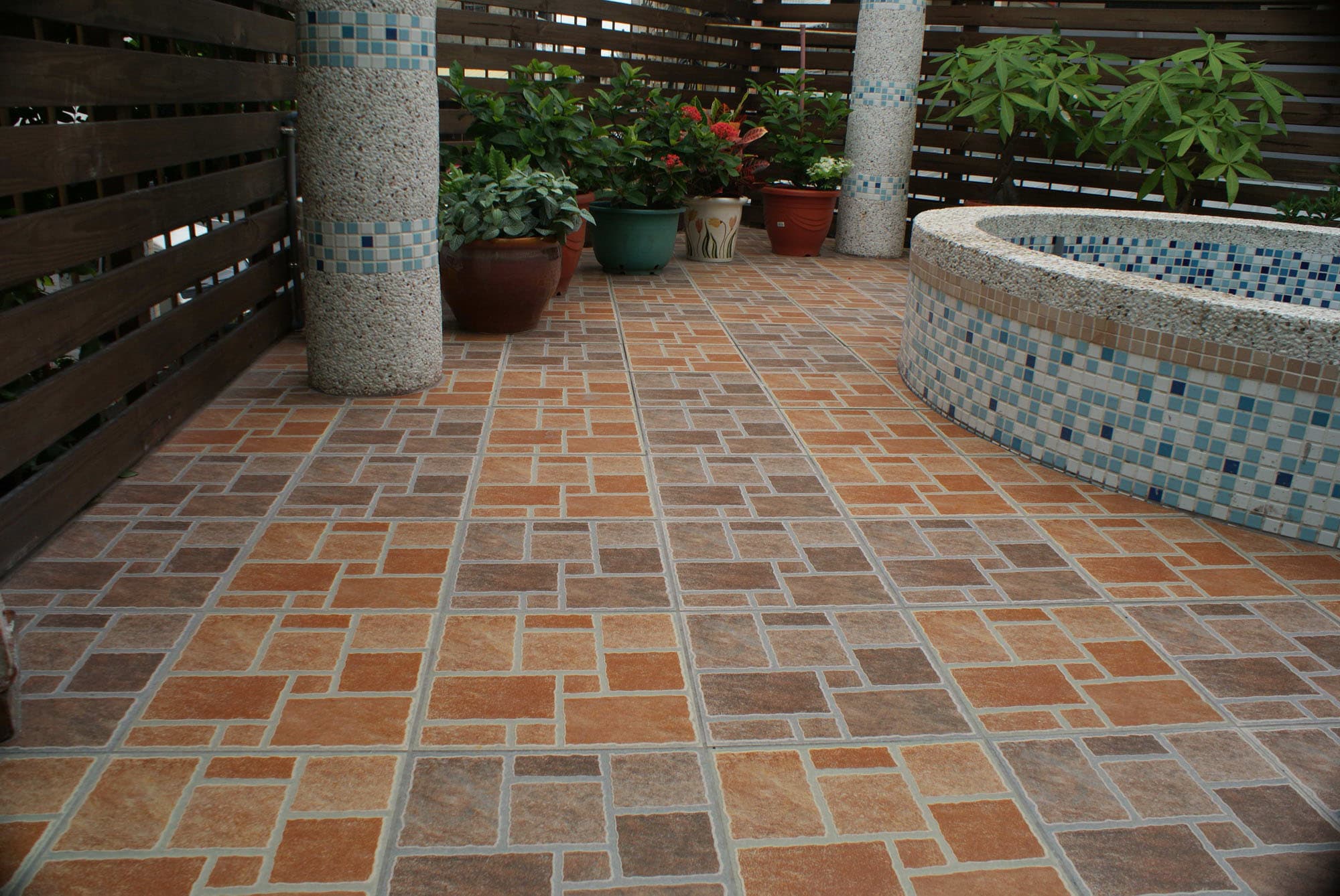 適用於庭院、廣場、人行道,陽台、具止滑效果。